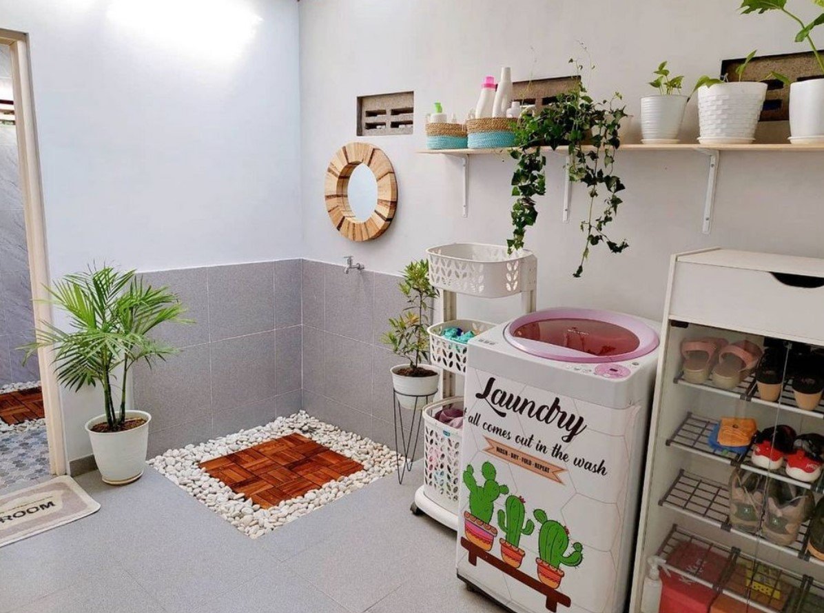 Tempat cuci baju manual sering dikaitkan dengan ruangan kumuh karena penataan desainnya yang kurang tepat. Untuk itulah, Anda bisa mencoba desain yang serba asri dengan dipenuhi tanaman hias tanpa melupakan unsur fungsionalitasnya.